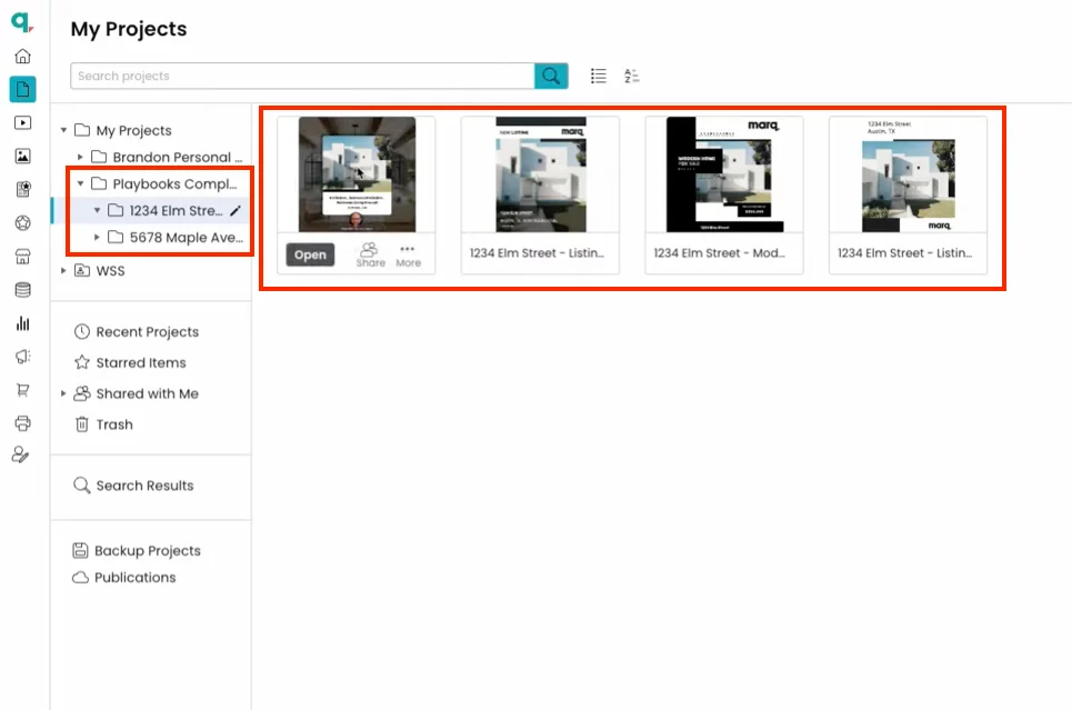CAPTION: Here’s an example of three Template Collections curated for real estate advisors, ensuring rapid access to pre-approved designs for social media, postcards and digital content such as online brochures.