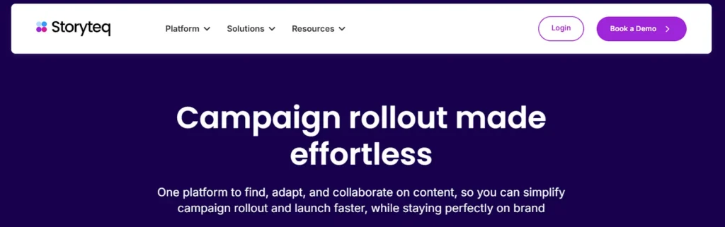 - Storyteq is a strong option for enterprise marketing teams that need to roll out campaigns across markets and keep adaptations aligned to the master campaign.